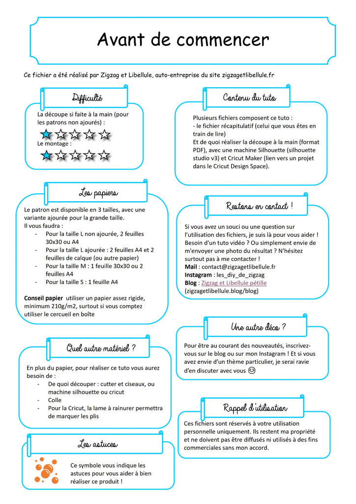 - un fichier pdf regroupant les instructions et les patrons à imprimer pour une découpe à la main